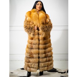 Rxfurs เสื้อโค้ทขนสุนัขจิ้งจอกสีแดงแท้พร้อมผ้าคลุมไหล่คอปกใหญ่ความยาวถึงพื้นยาวเต็มรูปแบบโรงงานออกแบบได้ตามต้องการ