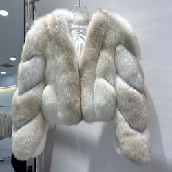 RX แจ็คเก็ตสุนัขจิ้งจอกอาเกตแบบกำหนดเองเสื้อกันหนาวแฟชั่นลายทางแนวตั้งให้ความอบอุ่นในฤดูหนาวเสื้อโค้ทขนเฟอร์ขนาดใหญ่พร้อมผ้าพันคอ